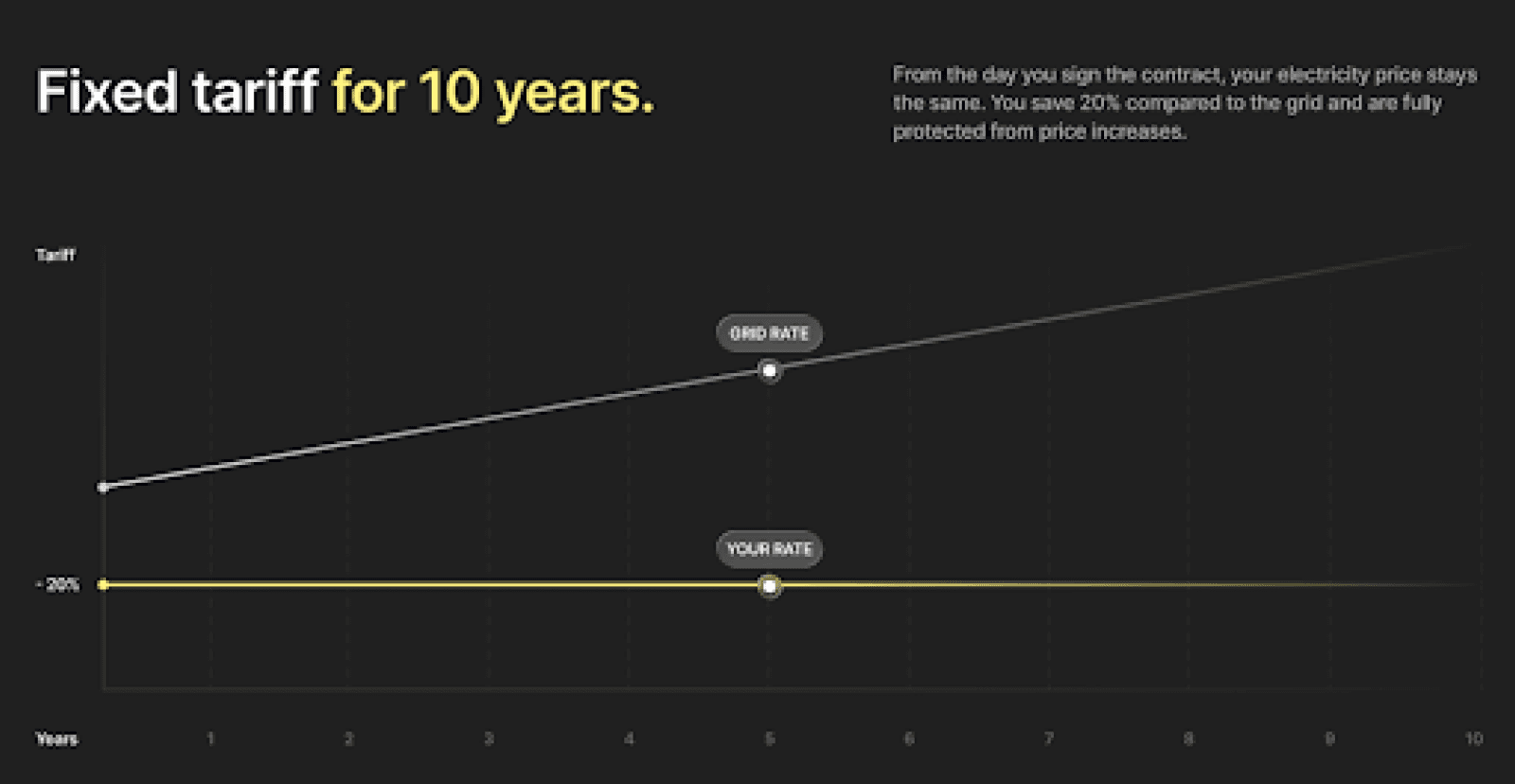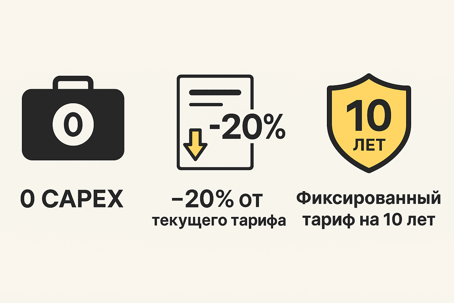 The key difference from traditional schemes: savings start immediately, not years later after the system pays for itself. For companies in tariff categories BT-3 and BT-4, where variable and peak charges make up a large share of costs, the effect is especially noticeable — a fixed rate directly reduces the cost of production.